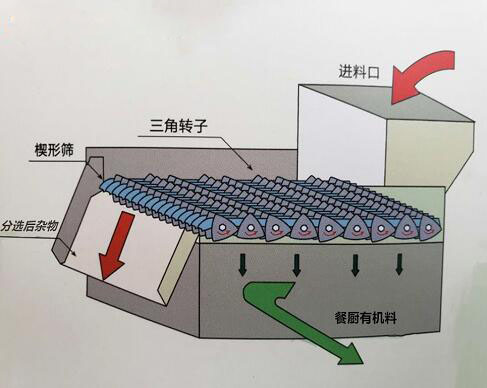 餐廚垃圾收集起來(lái)以后,里面的成分非常復雜,常;烊胨芰洗、玻璃瓶、餐具、廚具、瓶蓋、紙盒等雜物。為保證后續設備正常運行、產(chǎn)品的穩定性,需要對原料進(jìn)行有效分揀。所以這些雜物必須處理掉,原來(lái)處理這些雜物使靠人工來(lái)篩選,人工篩選帶來(lái)很多問(wèn)題,①人工篩選需要有篩選平臺;②要有篩選工具;③不衛生,不環(huán)保;④沒(méi)辦法滿(mǎn)足現狀的需求。